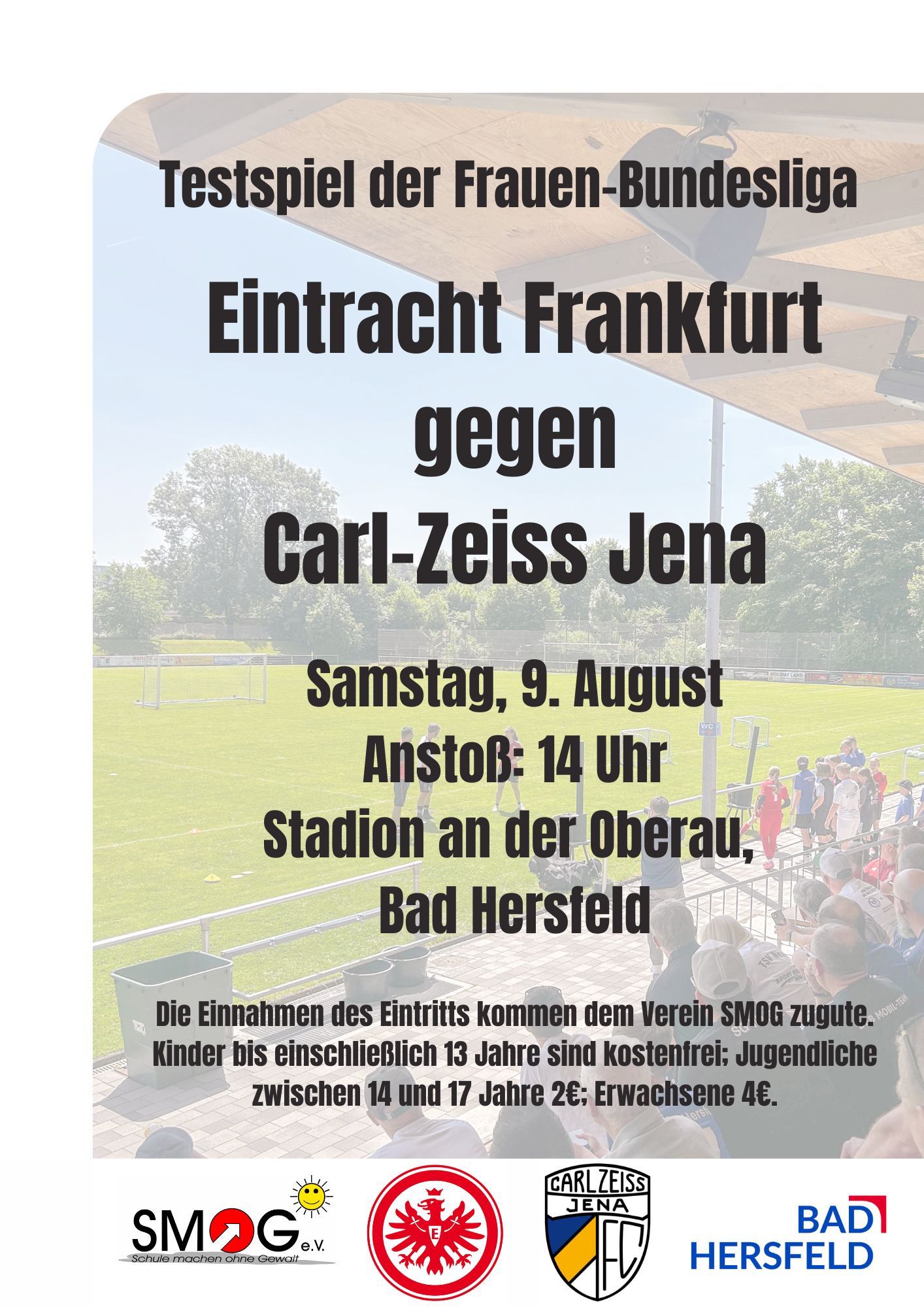 Bad Hersfeld. Auf ein echtes Highlight dürfen sich Fußball-Fans am Samstag, 9. August freuen: Zwei Teams aus der Flyeralarm Frauen-Bundesliga treffen bei einem Vorbereitungsspiel im Stadion an der Oberau aufeinander. Eintracht Frankfurt empfängt den Ligakonkurrenten FC Carl-Zeiss Jena – Anstoß ist um 14 Uhr.