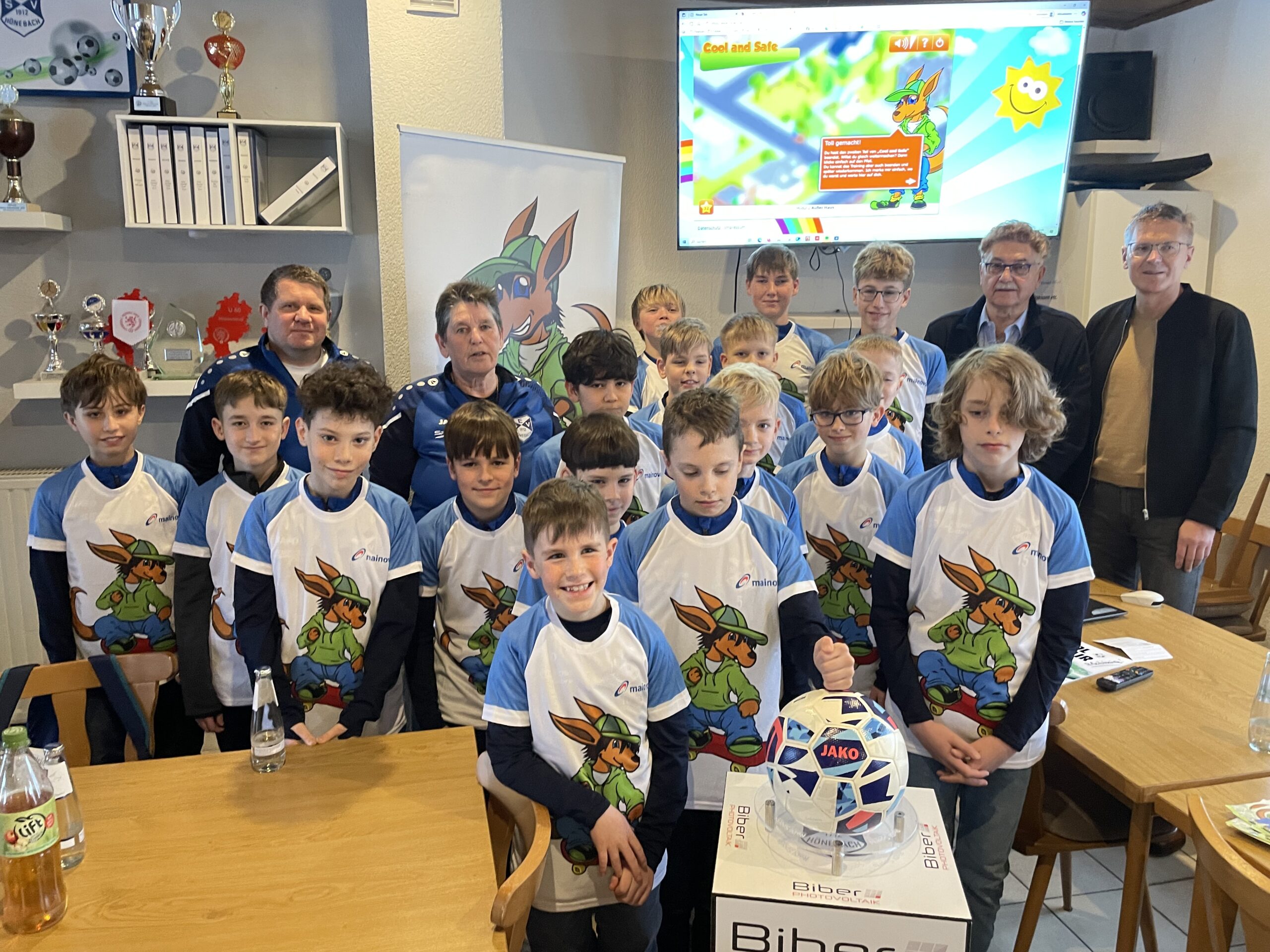 Einge­laden waren die Kinder, deren Eltern und die Vereins­ak­tiven, um zusammen mit dem SMOG-Trainer Erwin Maisch das inter­ak­tive Lern­pro­gramm „Cool and Safe“ durch­zu­spielen. Dazu hat SMOG e. V. eine in den App-Stores kosten- und werbe­frei herun­ter­zu­la­dende App entwi­ckelt, die mit zahl­rei­chen Kurz­filmen und Aufgaben ein kurz­wei­liges Lernen ermöglicht.